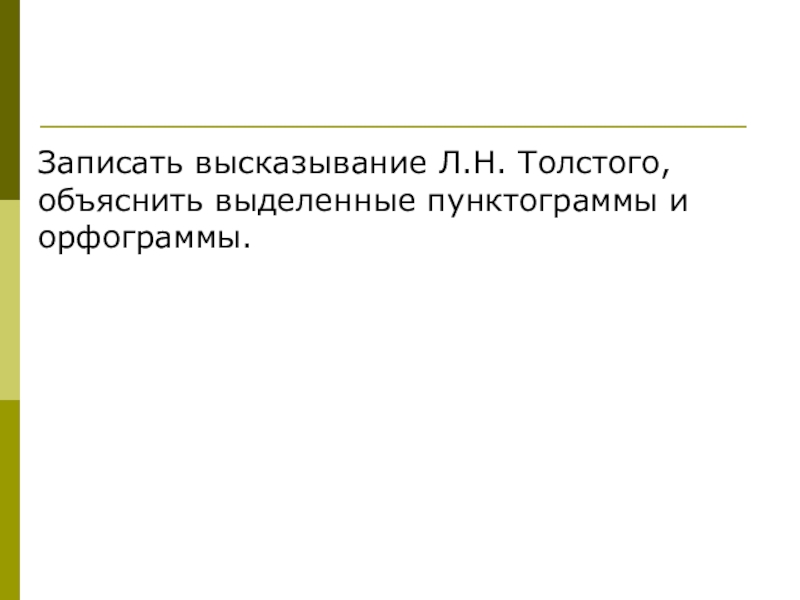 Слайд 14Записать высказывание Л.Н. Толстого, объяснить выделенные пунктограммы и орфограммы.