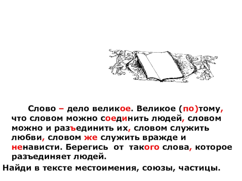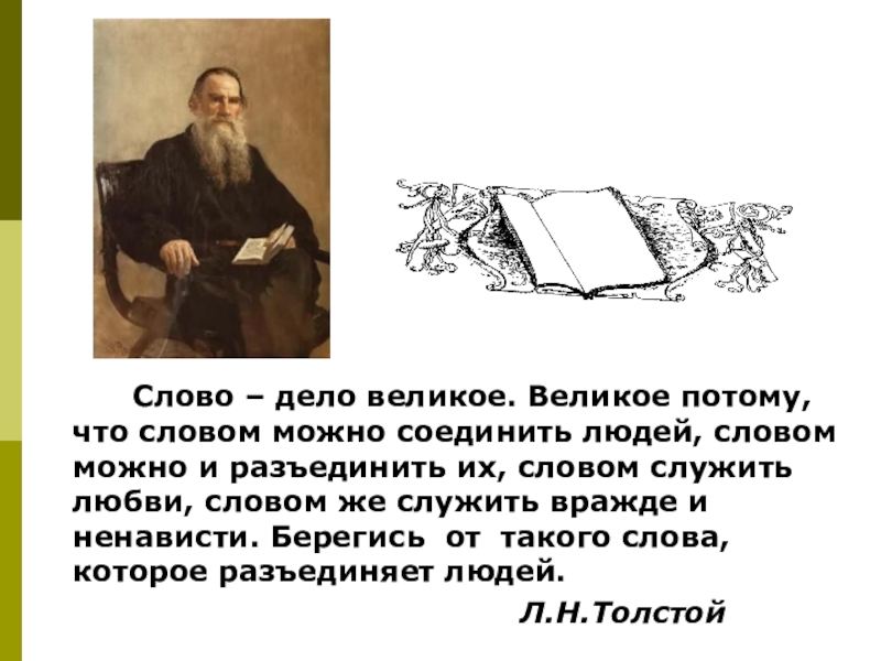 Слово – дело великое. Великое (по)тому, что словом можно соединить людей, словом можно и разъединить их, словом служить любви, словом же служить вражде и ненависти. Берегись от такого слова, которое разъединяет людей.