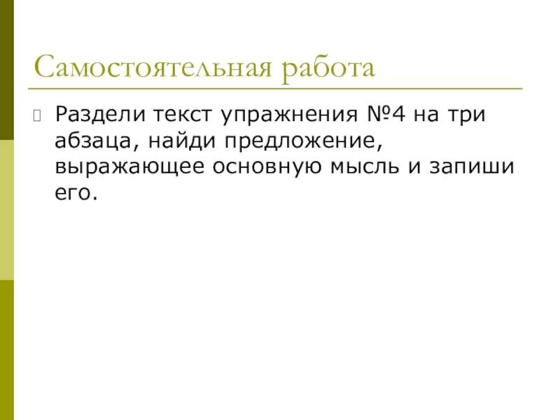 Раздели текст упражнения №4 на три абзаца, найди предложение, выражающее