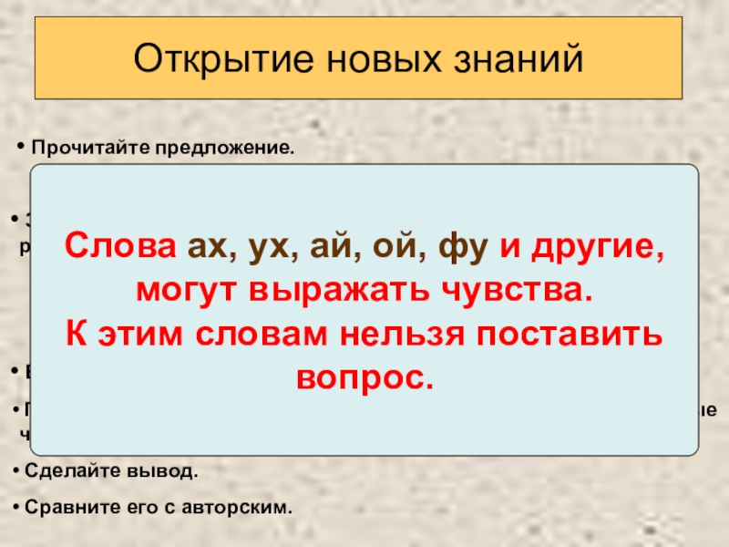 Ой, ах, ух, ай, ой, фу, эх, ха-ха, хе-хе.