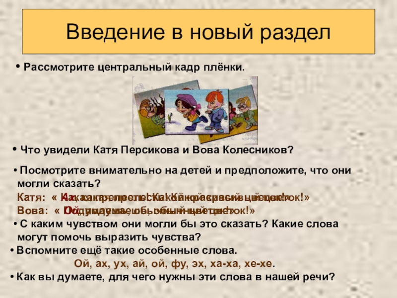 С каким чувством они могли бы это сказать? Какие слова могут помочь выразить чувства?