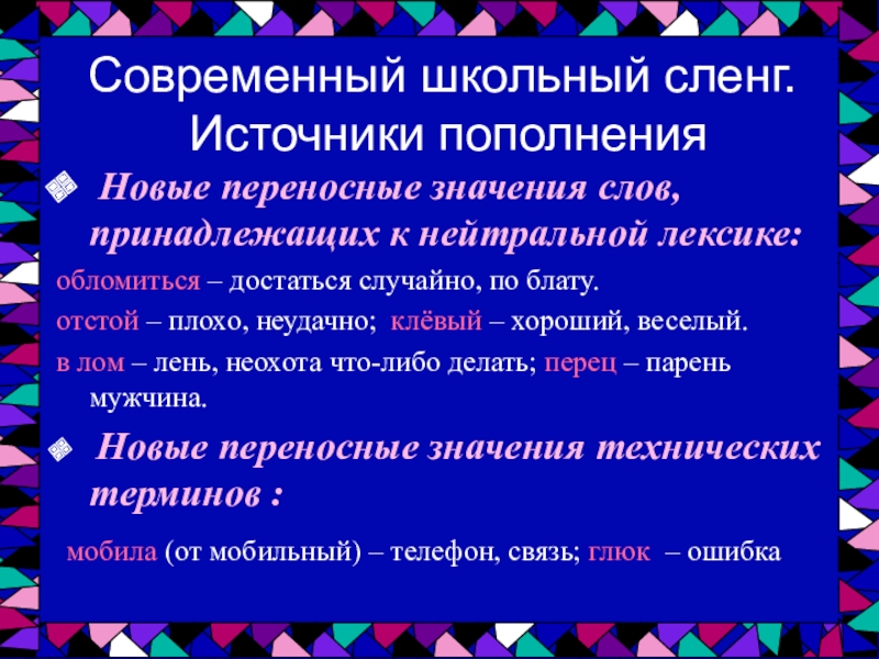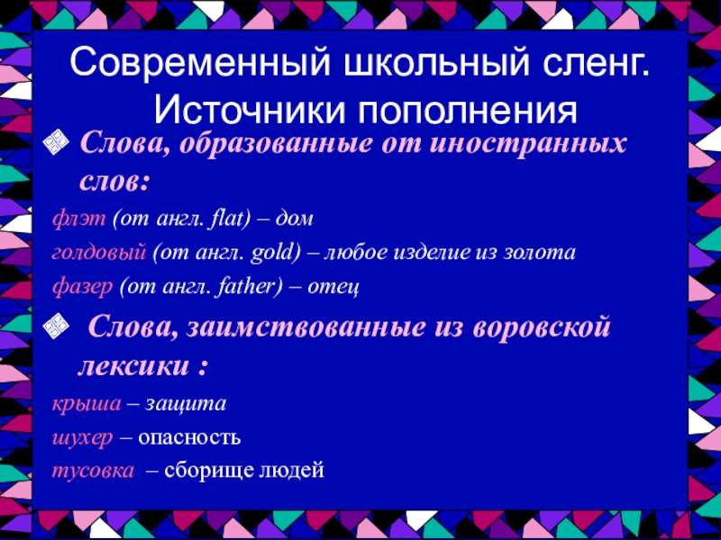 Современный школьный сленг.