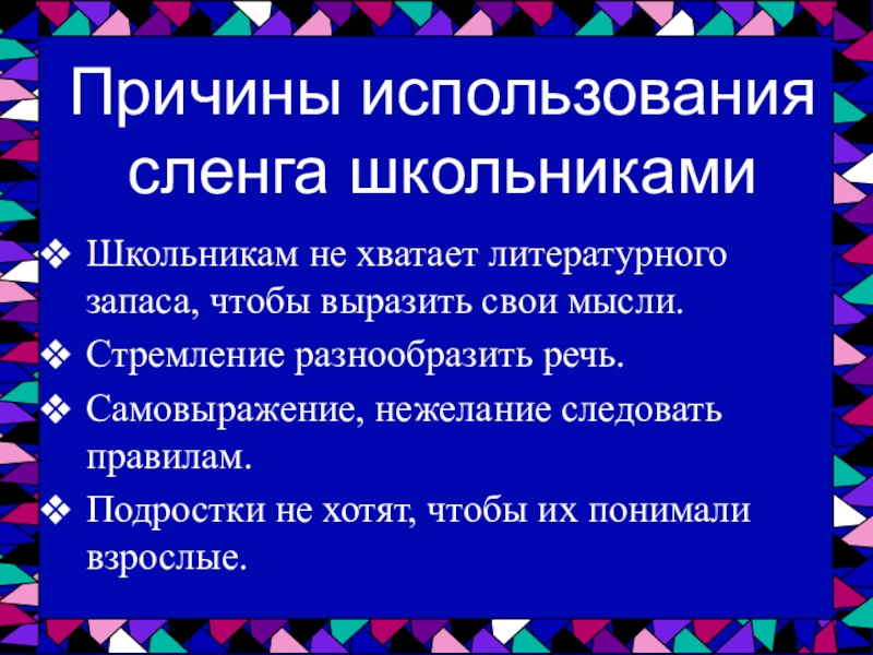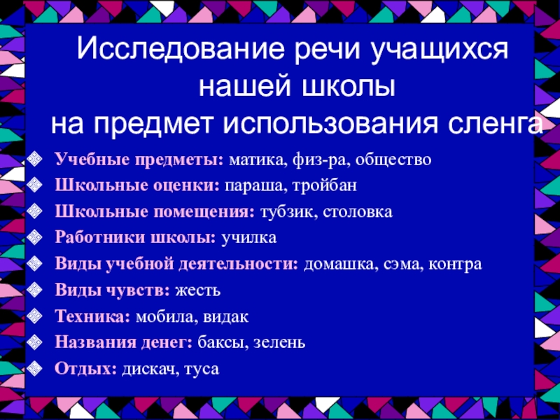 сленга школьниками