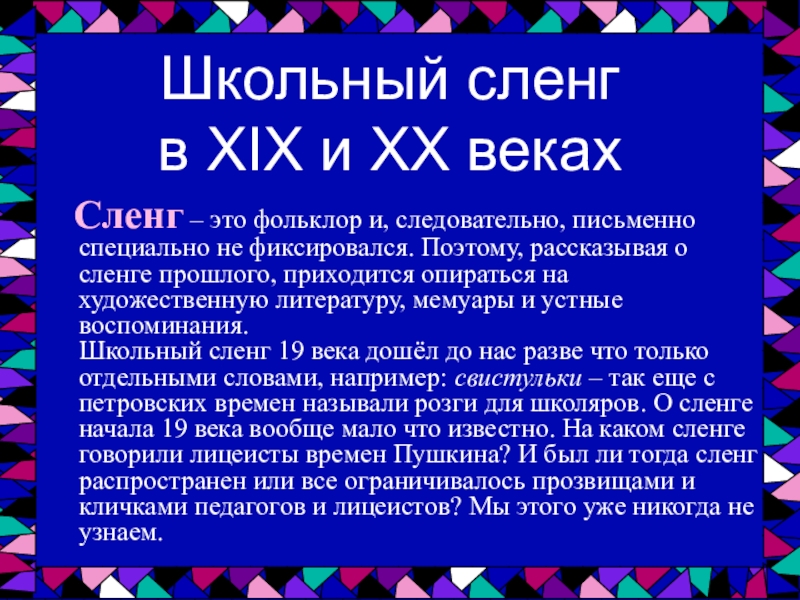Когда появился сленг?