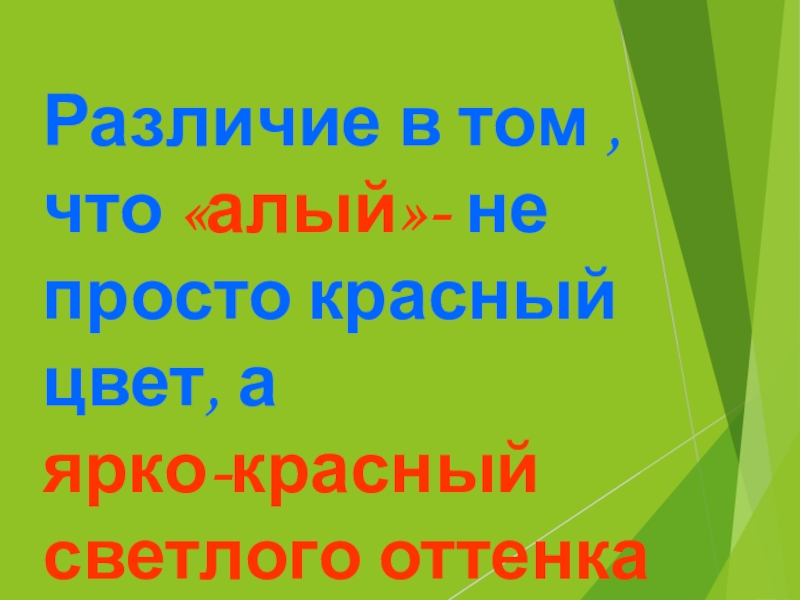 Слайд 7Различие в том , что «алый»- не просто красный цвет, а