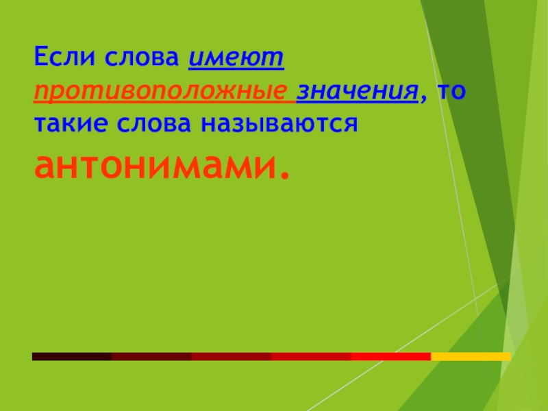 Слайд 12Если слова имеют противоположные значения, то такие слова называются антонимами.