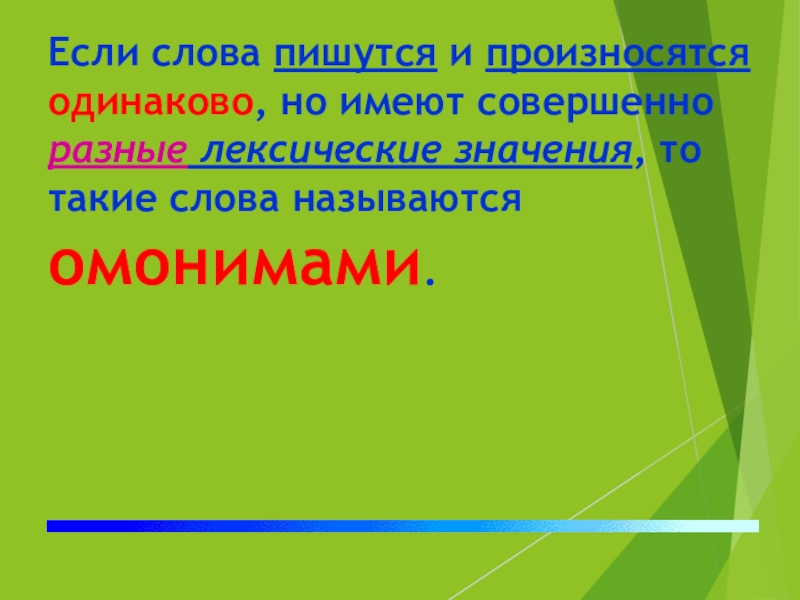 Слайд 3Если слова пишутся и произносятся одинаково, но имеют совершенно разные лексические