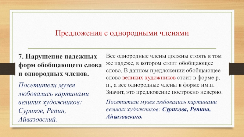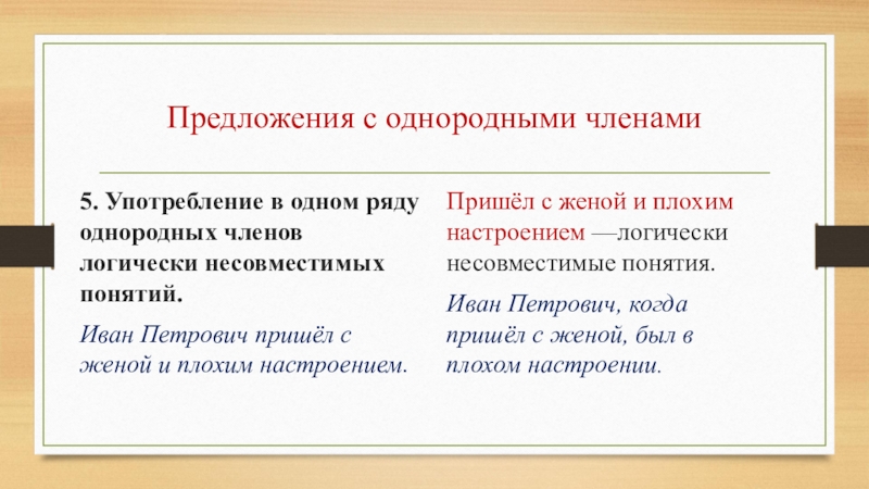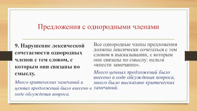 Все однородные члены предложения должны лексически сочетаться с тем словом в высказывании, с которым они связаны по смыслу: нельзя «внести замечание».