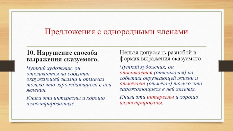 Нельзя допускать разнобой в формах выражения сказуемого.