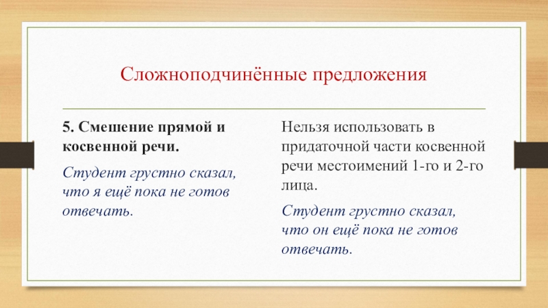 Нельзя использовать в придаточной части косвенной речи местоимений 1-го и 2-го лица.