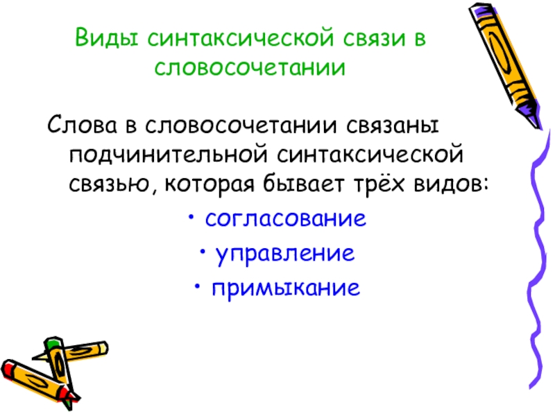 Выделяются три типа словосочетаний: