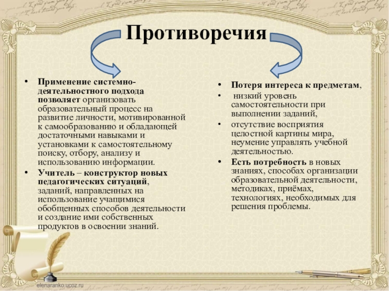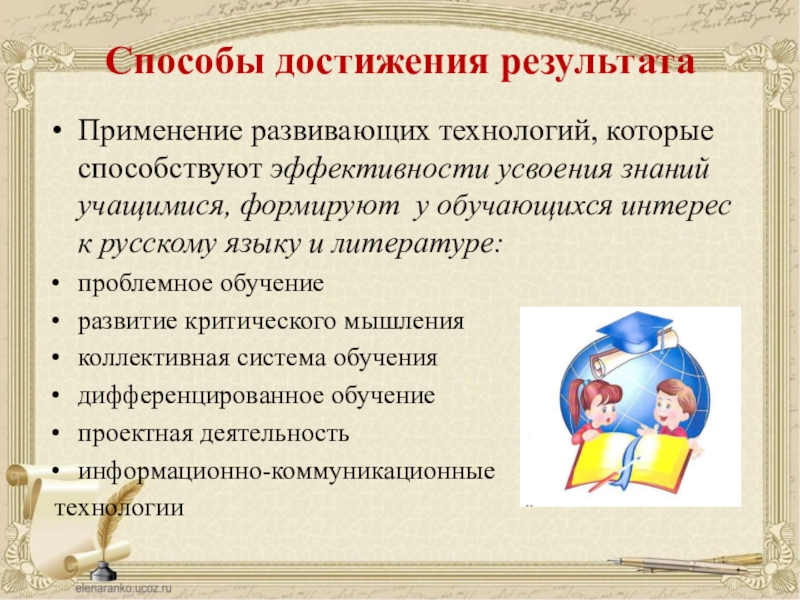 внедрить в образовательную практику методы, приёмы и способы организации образовательной деятельности, основанные на системно-деятельностном подходе в обучении и воспитании;
