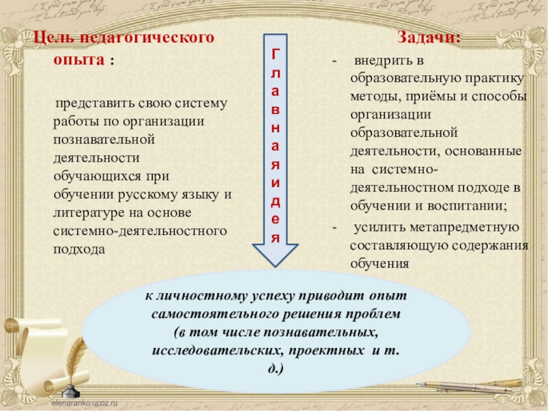 к личностному успеху приводит опыт самостоятельного решения проблем (в том числе познавательных, исследовательских, проектных и т.д.)
