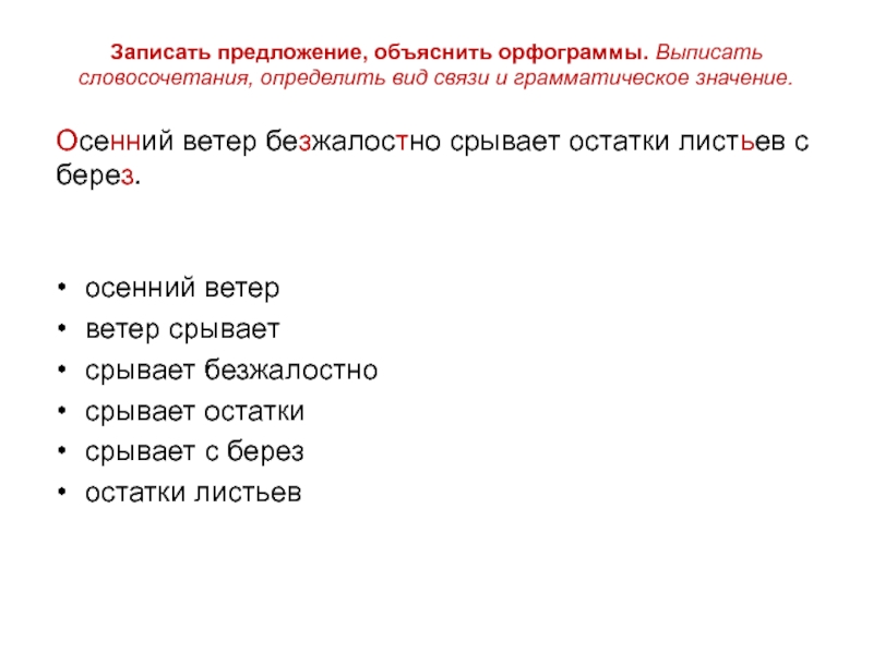 …се(н,нн)ий ветер бе(с,з)жалос(?)но срывает остатки лист(ъ,ь)ев с бере(с,з).