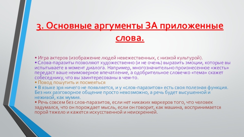 Слайд 53. Основные аргументы ЗА приложенные слова.