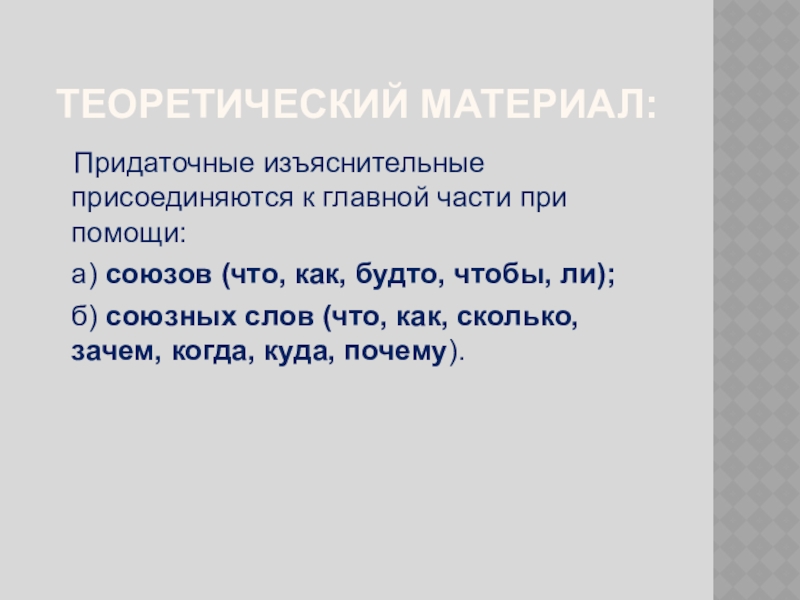 Придаточные изъяснительные присоединяются к главной части при помощи:
