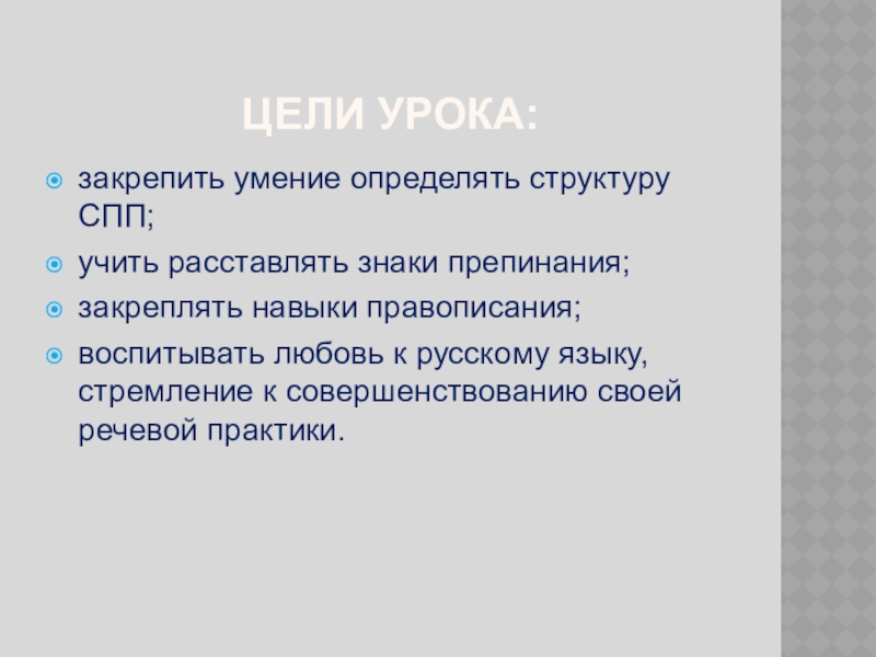закрепить умение определять структуру СПП;