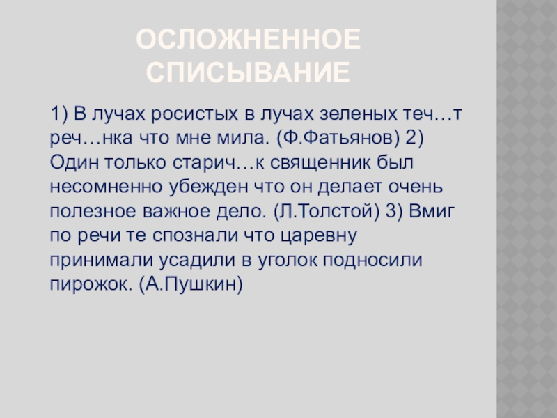 Слайд 4Осложненное списывание