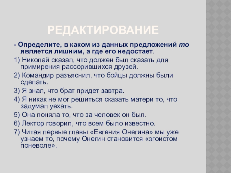 - Определите, в каком из данных предложений то является лишним, а