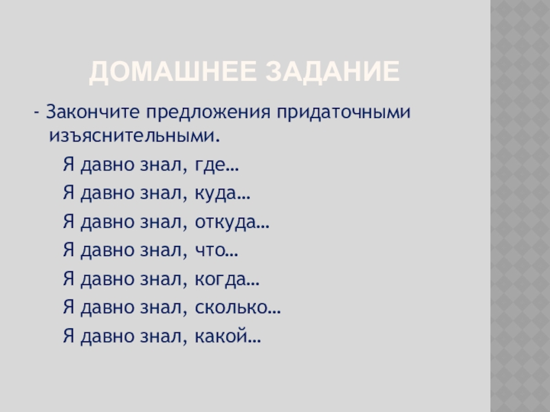 - Закончите предложения придаточными изъяснительными.