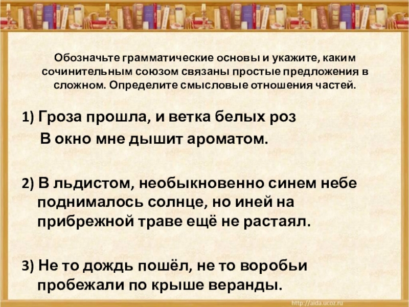 2) В льдистом, необыкновенно синем небе поднималось солнце, но иней на прибрежной траве ещё не растаял.