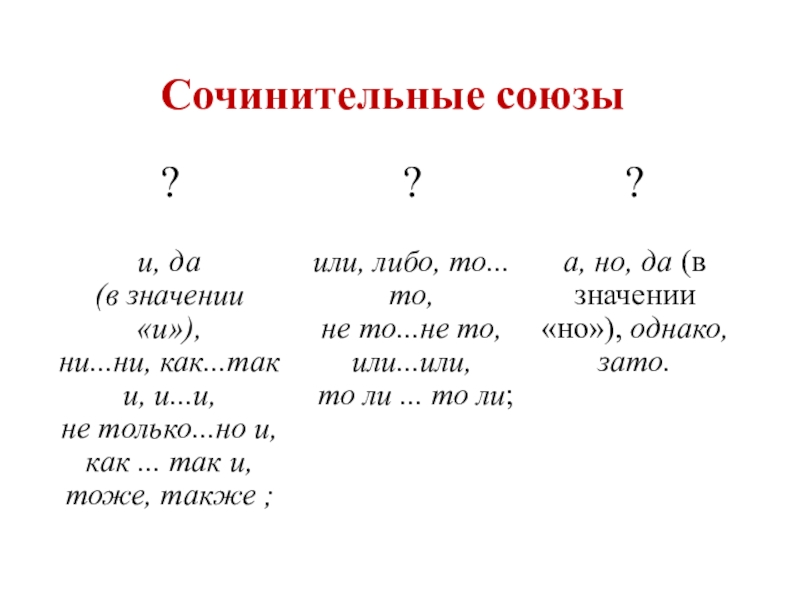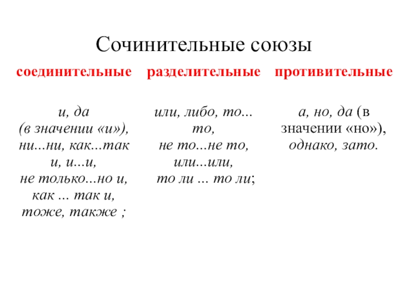 сочинительными союзами и, как правило, равноправны грамматически и по смыслу.