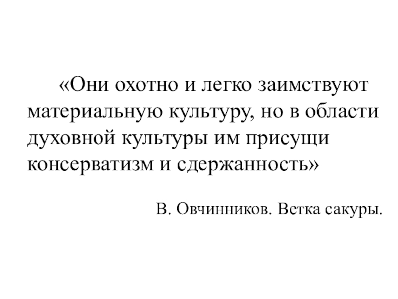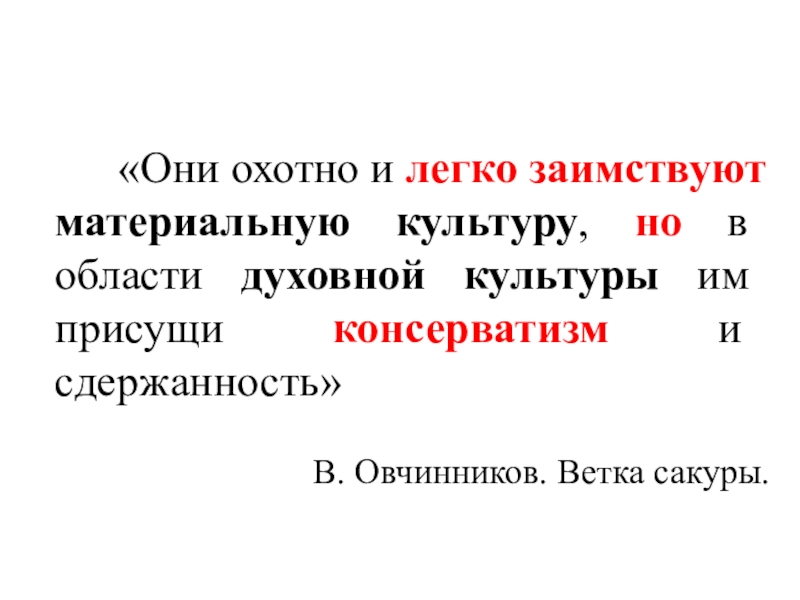 Слайд 26«Они охотно и легко заимствуют материальную культуру, но в области духовной