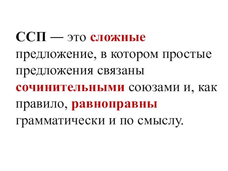 ССП ― это сложные предложение, в котором простые предложения связаны