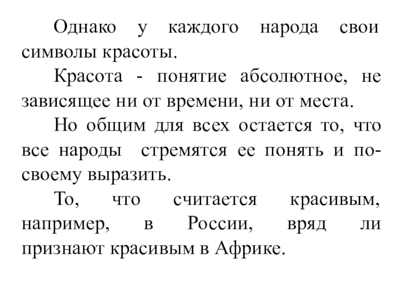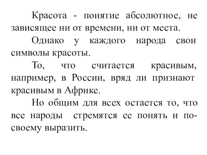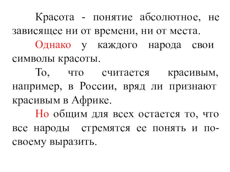 Слайд 21 Красота - понятие абсолютное, не зависящее ни от времени, ни от