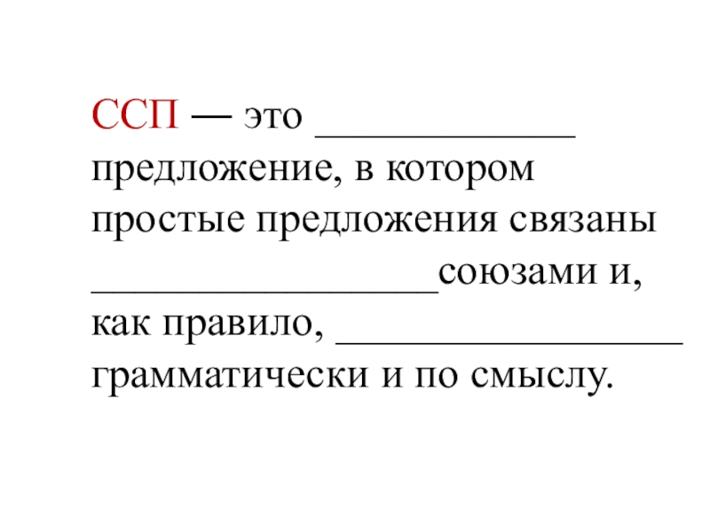 Слайд 3ССП ― это ____________ предложение, в котором простые предложения связаны ________________союзами