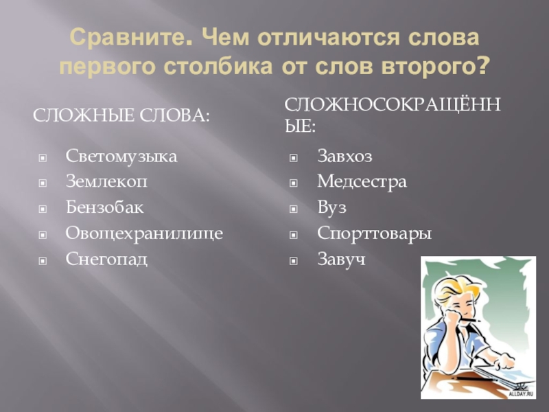 Это сайт презентаций, где можно хранить и обмениваться своими презентациями, докладами, проектами, шаблонами в формате PowerPoint с другими пользователями. Мы помогаем школьникам, студентам, учителям, преподавателям хранить и обмениваться учебными материалами.