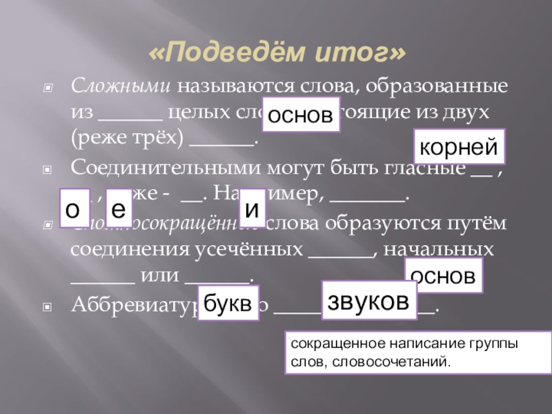 сокращенное написание группы слов, словосочетаний.