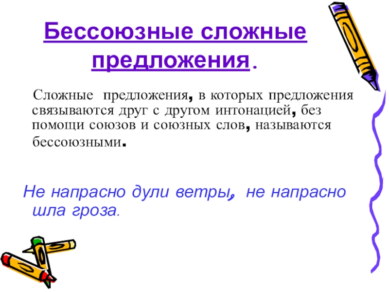 Слайд 9Бессоюзные сложные предложения.