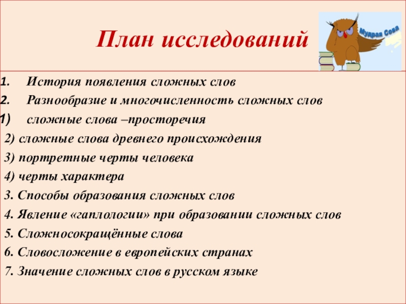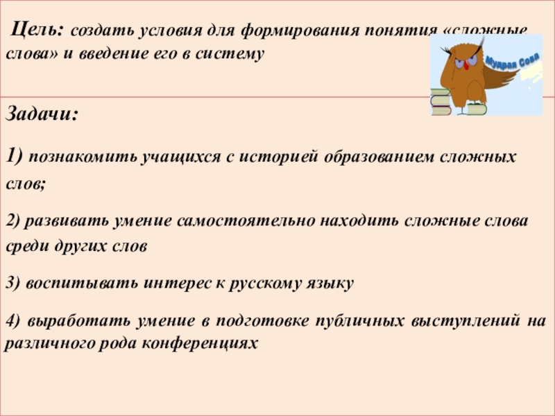 1) познакомить учащихся с историей образованием сложных слов;