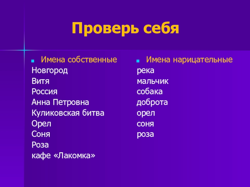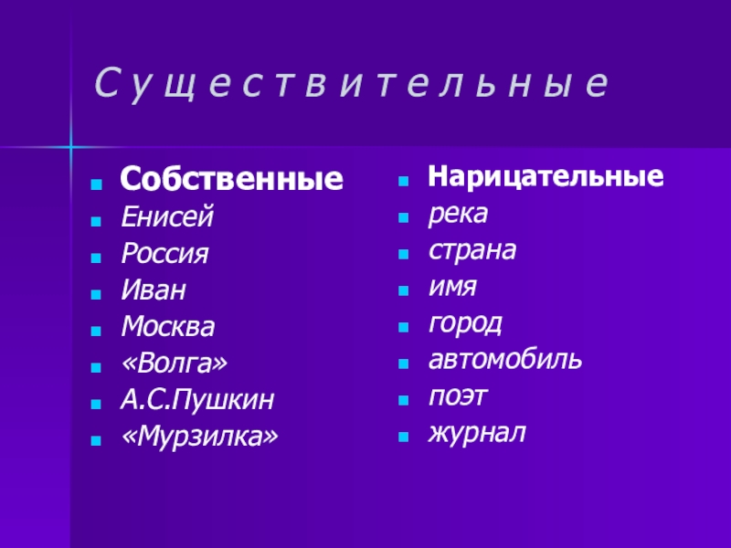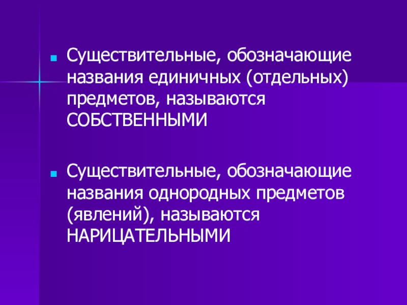 Существительные, обозначающие названия единичных (отдельных) предметов, называются СОБСТВЕННЫМИ