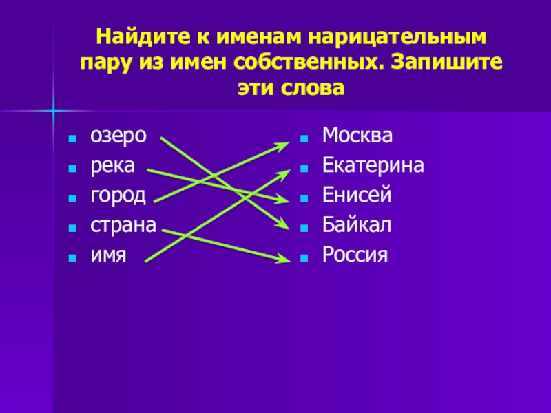 Слайд 29Найдите к именам нарицательным пару из имен собственных. Запишите эти слова