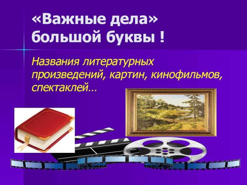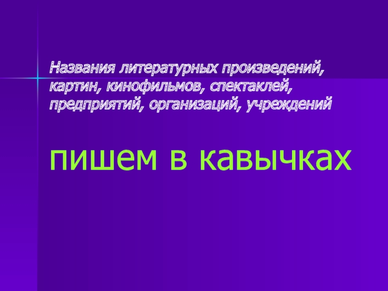 Слайд 26Названия литературных произведений, картин, кинофильмов, спектаклей, предприятий, организаций, учреждений