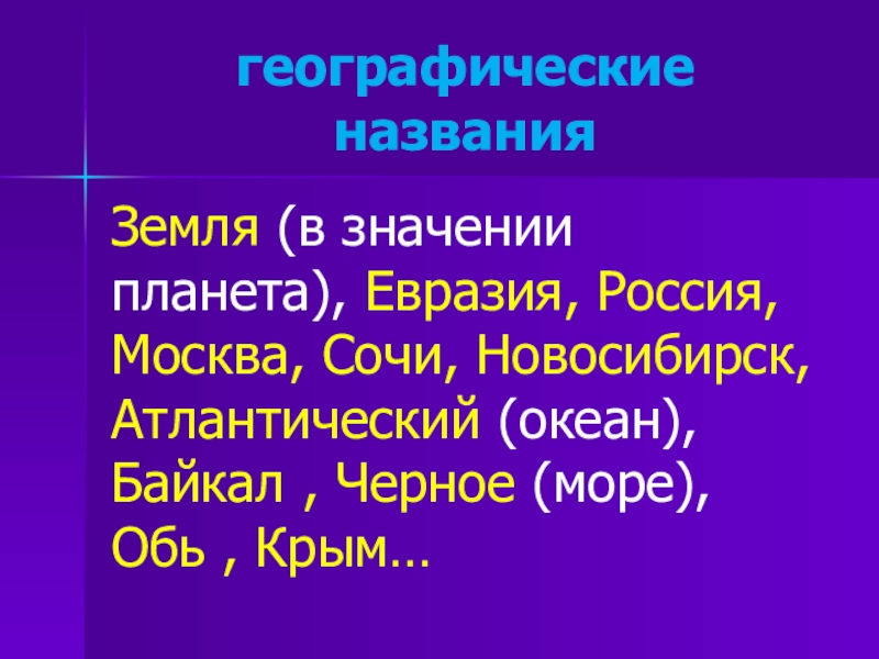 Земля (в значении планета), Евразия, Россия, Москва, Сочи, Новосибирск, Атлантический