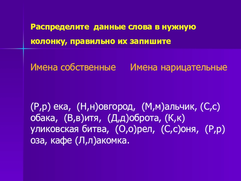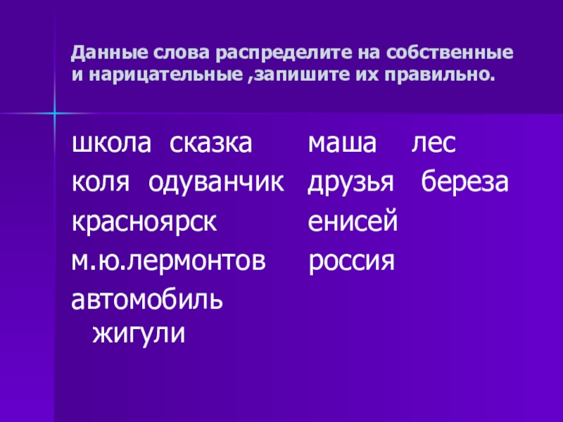 Слайд 34Данные слова распределите на собственные и нарицательные ,запишите их правильно.