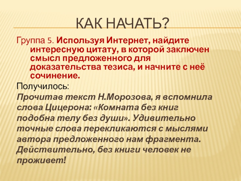 смысл предложенного для доказательства тезиса, и начните с неё сочинение.