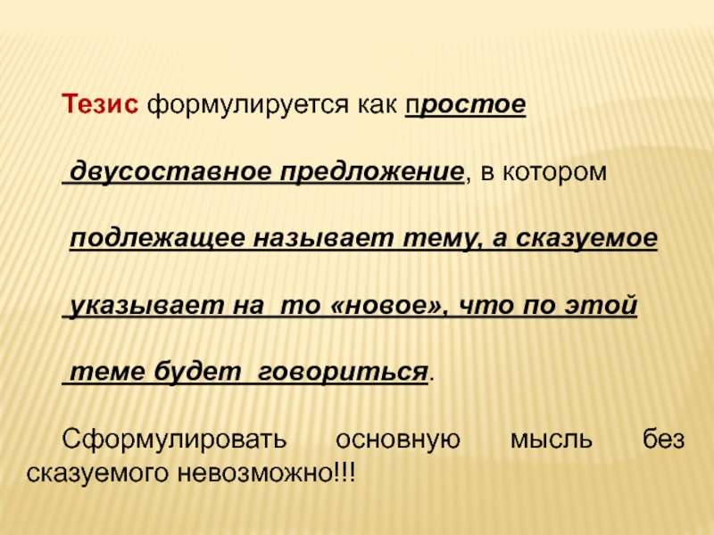 Сформулировать основную мысль без сказуемого невозможно!!!