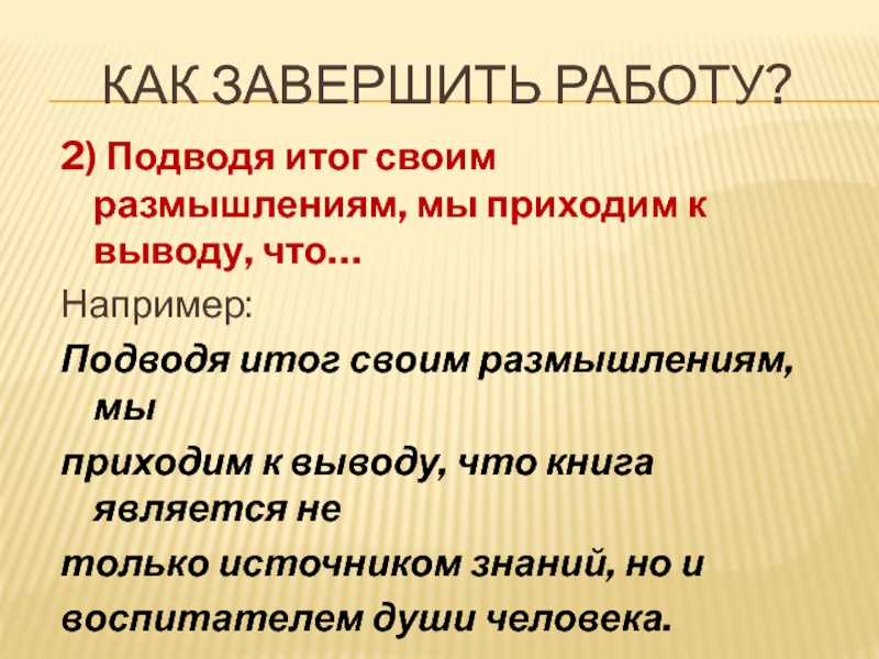2) Подводя итог своим размышлениям, мы приходим к выводу,