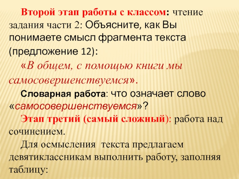 Слайд 5Второй этап работы с классом: чтение задания части 2: Объясните, как