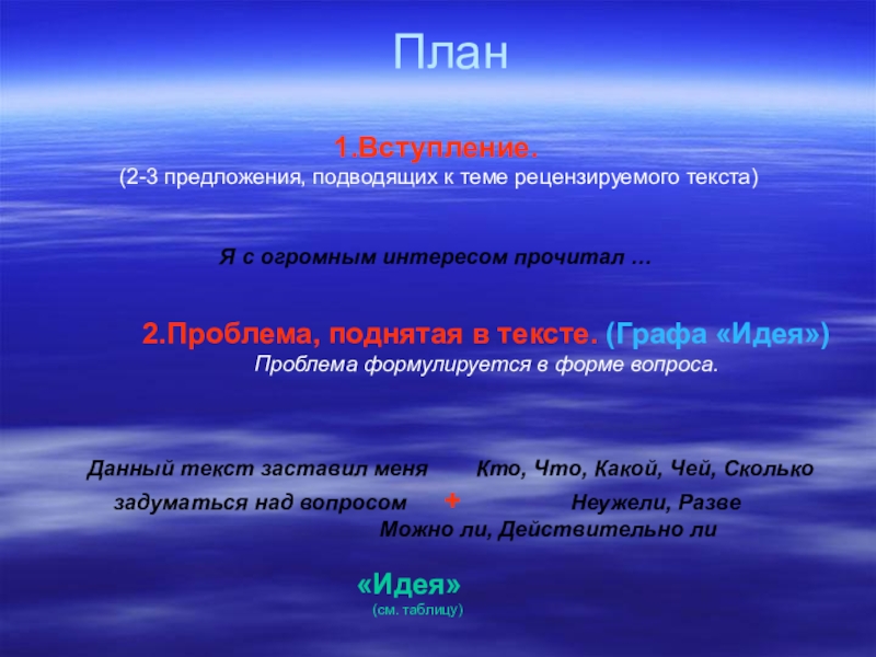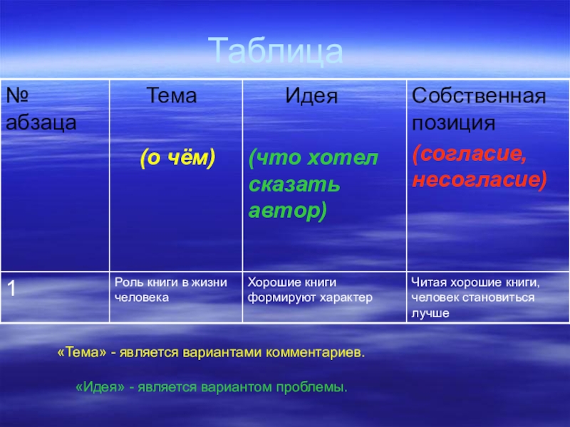 2.Проблема, поднятая в тексте. (Графа «Идея»)