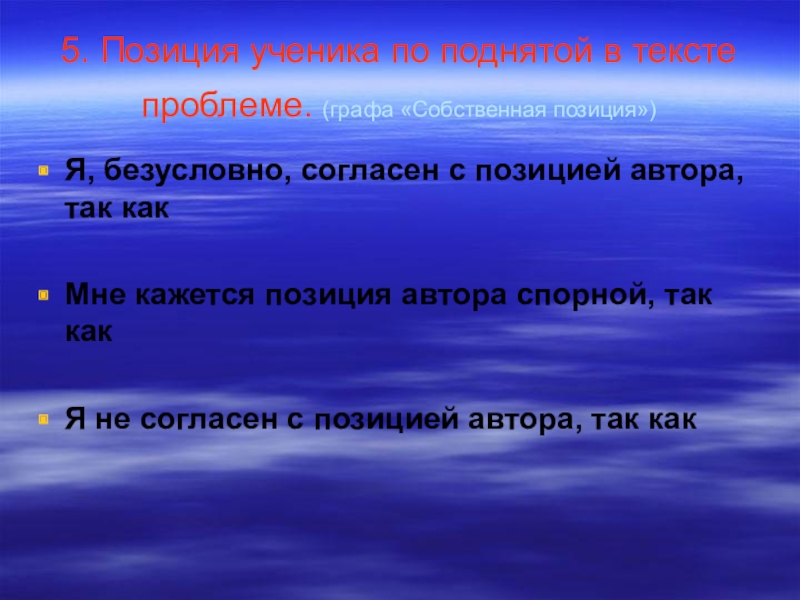 6. Аргументы, подтверждающие или опровергающие авторскую позицию (ученик приводит не менее двух аргументов, опираясь на свой жизненный и (или) читательский опыт).