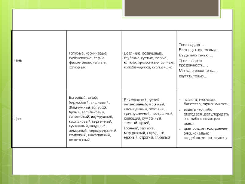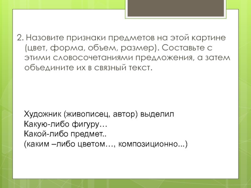(каким –либо цветом…, композиционно...)