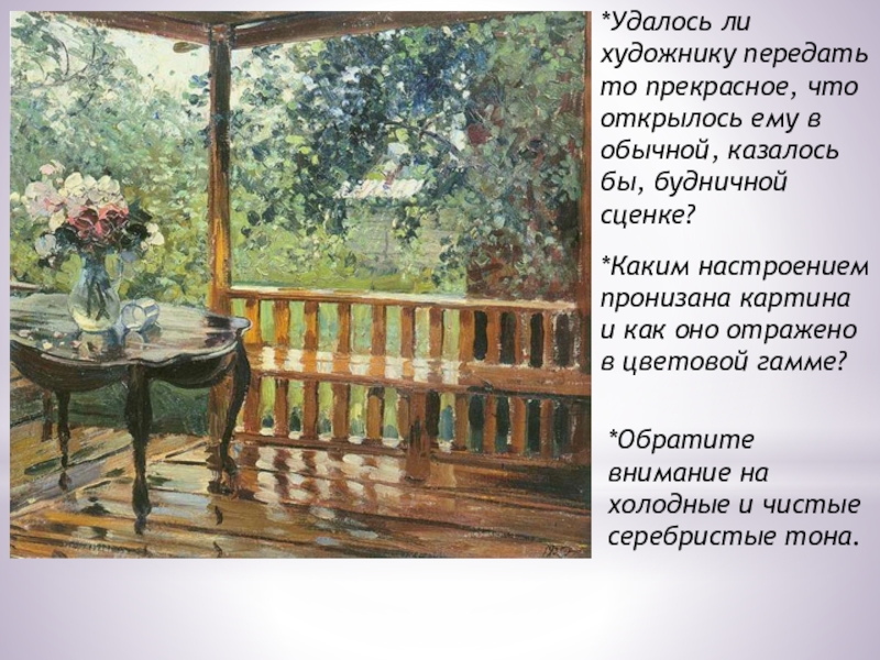 *Каким настроением пронизана картина и как оно отражено в цветовой гамме?