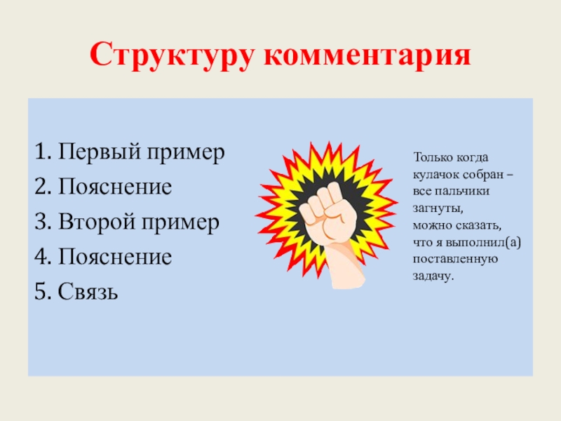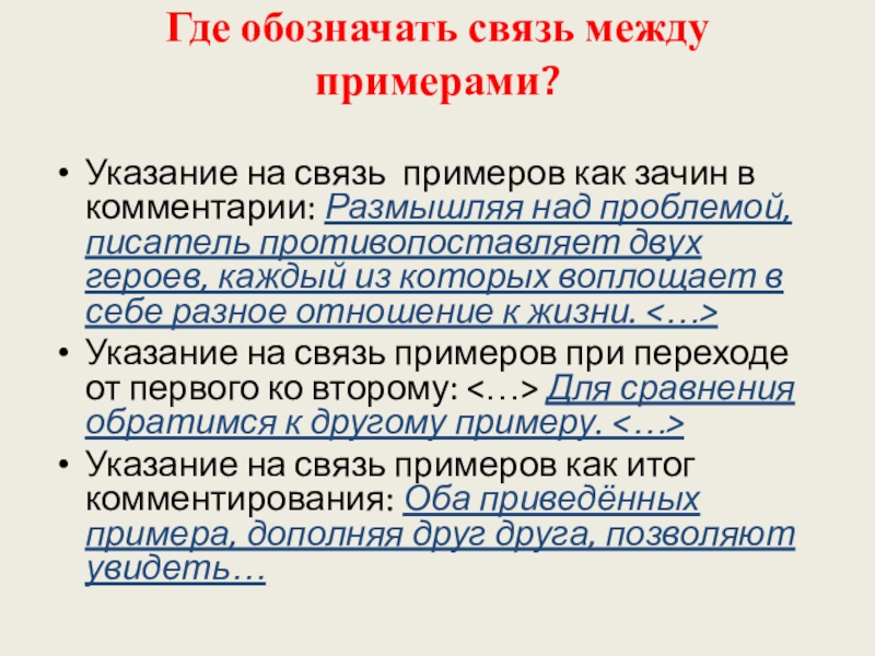 Комментарий (пример-иллюстрация, пояснение значения примера, указание связи между примерами)