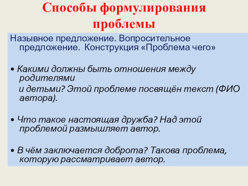 Назывное предложение. Вопросительное предложение. Конструкция «Проблема чего»