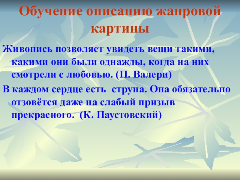 В каждом сердце есть струна. Она обязательно отзовётся даже на слабый призыв прекрасного. (К. Паустовский)